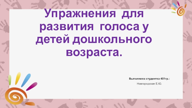 Слайд 1Упражнения для развития голоса у детей дошкольного возраста.