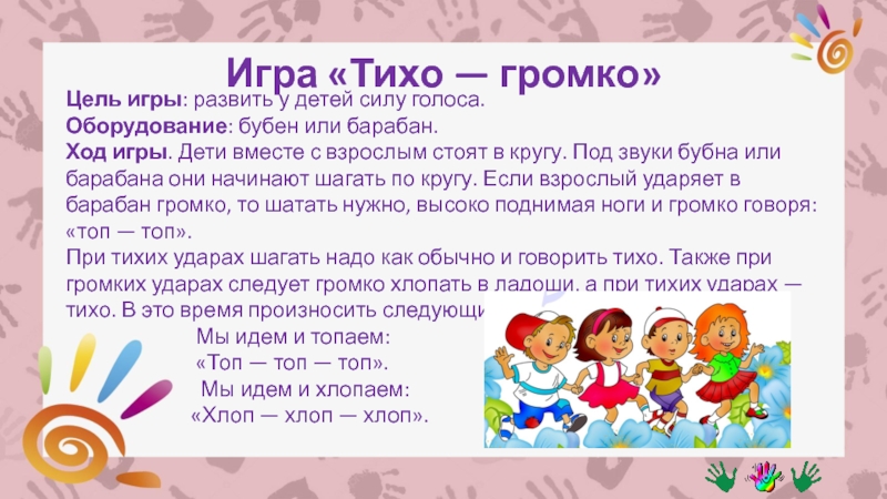 Слайд 9Игра «Тихо — громко»