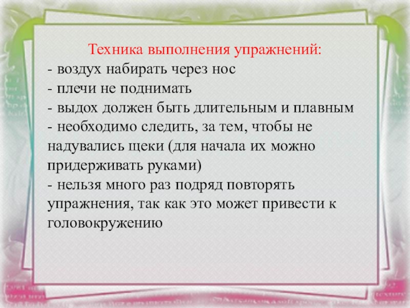 - нельзя много раз подряд повторять упражнения, так как это может привести к головокружению