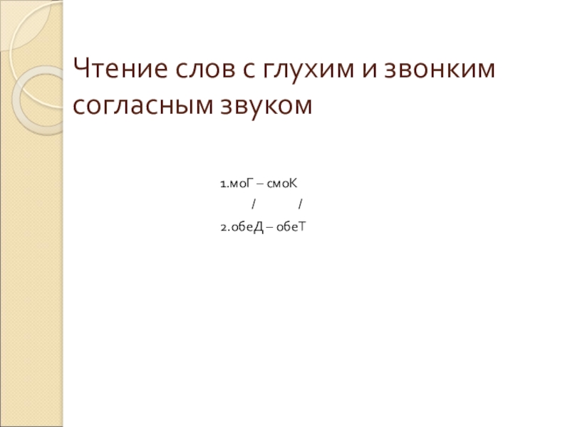 Чтение слов с глухим и звонким  согласным звуком1.моГ – смоК     /
