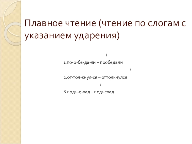Слайд 5Плавное чтение (чтение по слогам с указанием ударения)