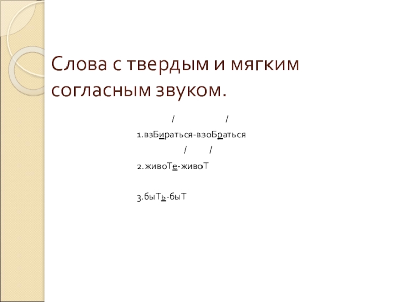 Слайд 4Слова с твердым и мягким согласным звуком.