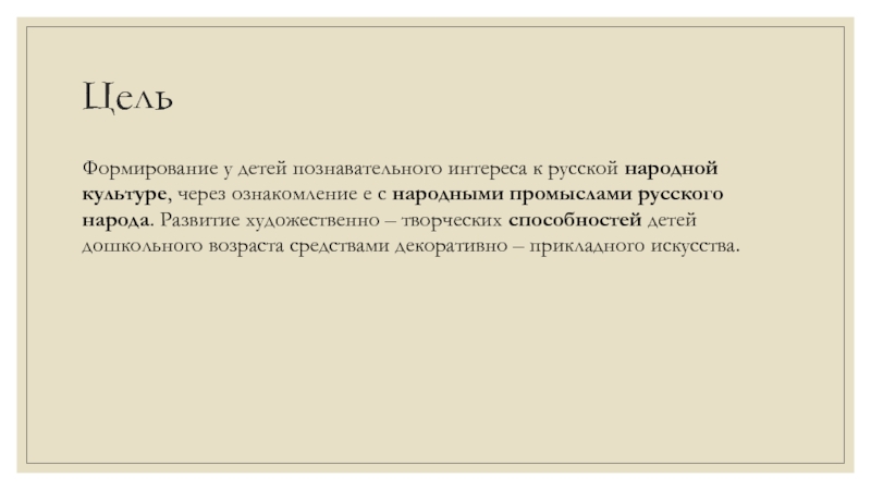 с народными промыслами русского народа. Развитие художественно – творческих способностей детей дошкольного возраста средствами декоративно – прикладного искусства.