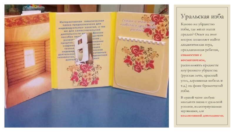 В правой части лэпбука находится сказка о уральской росписи, иллюстрированная картинками, для коллективной деятельности.