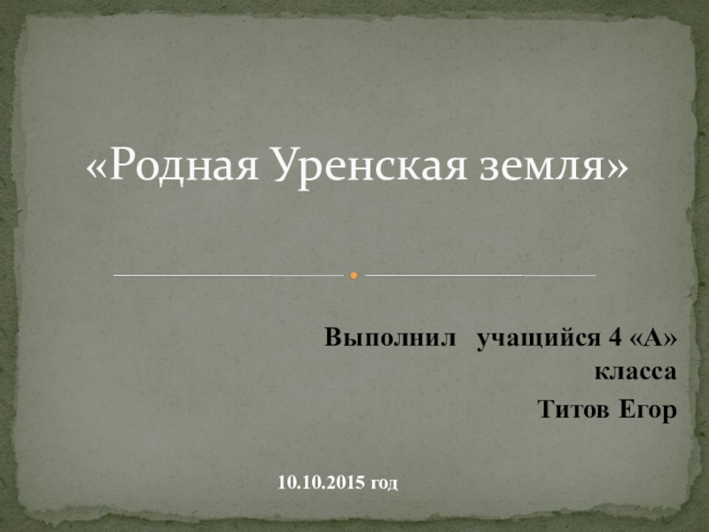 Выполнил  учащийся 4 «А» классаТитов Егор«Родная Уренская земля»  10.10.2015 год