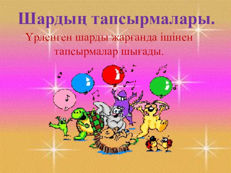 Шардың тапсырмалары.Үрленген шарды жарғанда ішінен тапсырмалар шығады.