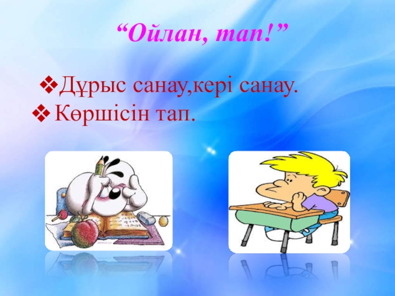 “Ойлан, тап!”Дұрыс санау,кері санау.Көршісін тап.