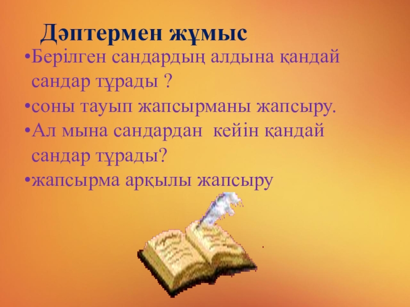 Слайд 8Дәптермен жұмыс