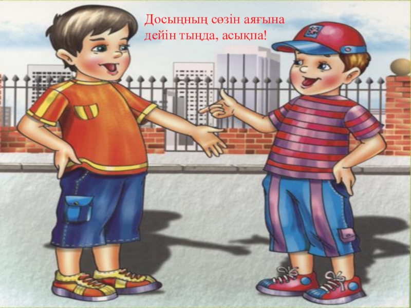 Слайд 3Досыңның сөзін аяғына дейін тыңда, асықпа!