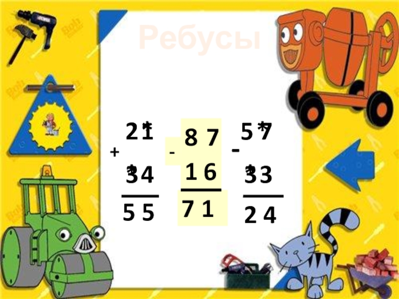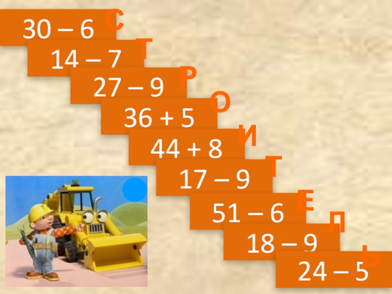 30 – 6 14 – 7 27 – 9 36 + 5 44 + 8 17 – 9 51 – 6 18 – 9 24 – 5 СТРОИТЕЛЬ