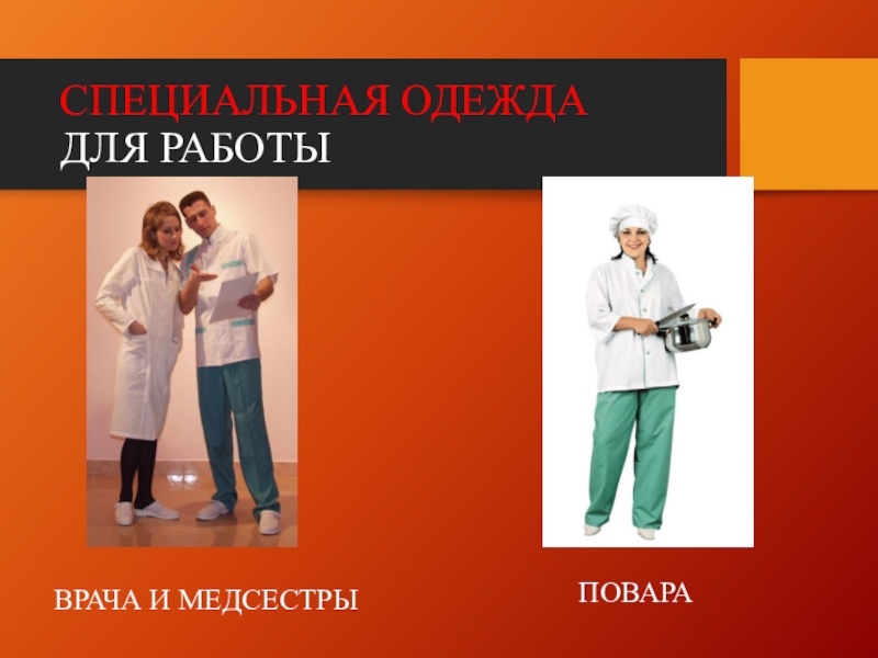 Слайд 22СПЕЦИАЛЬНАЯ ОДЕЖДА ДЛЯ РАБОТЫ