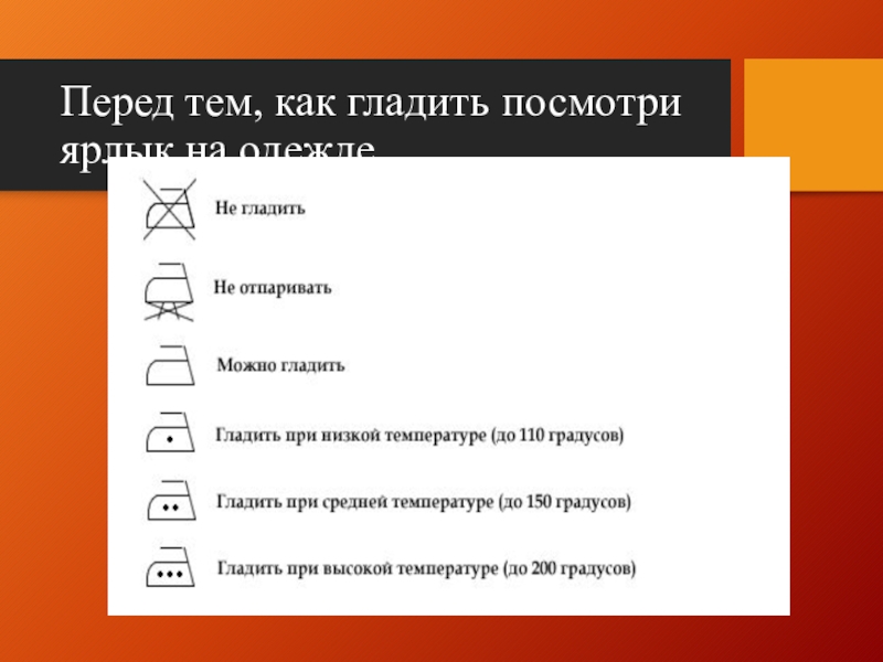 Слайд 34Перед тем, как гладить посмотри ярлык на одежде.