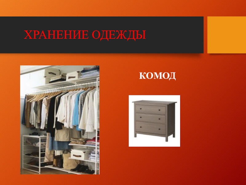 Слайд 38 ХРАНЕНИЕ ОДЕЖДЫ