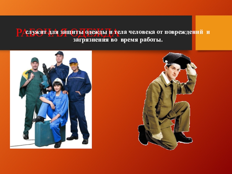 Слайд 23РАБОЧАЯ ОДЕЖДА