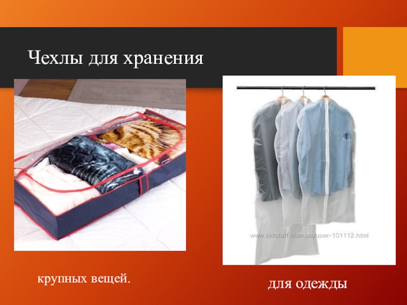 Чехлы для хранениядля одеждыкрупных вещей.