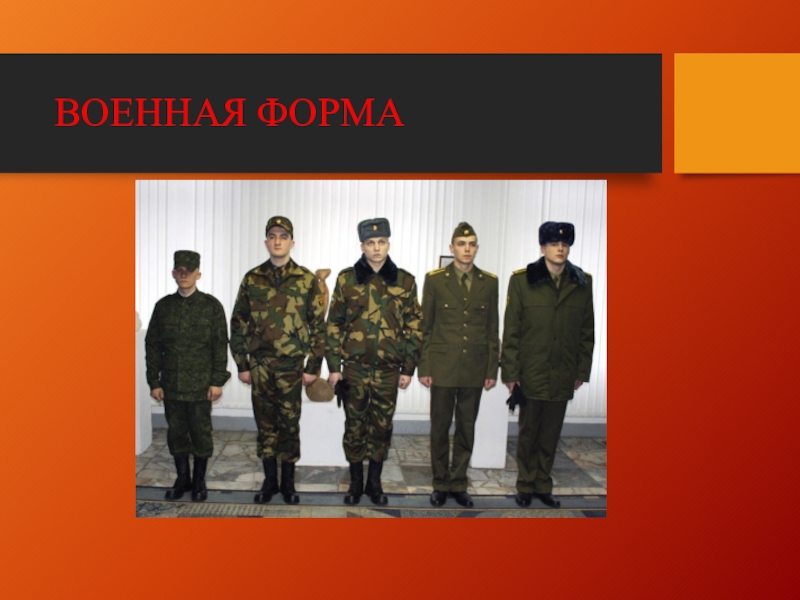 Слайд 26ВОЕННАЯ ФОРМА