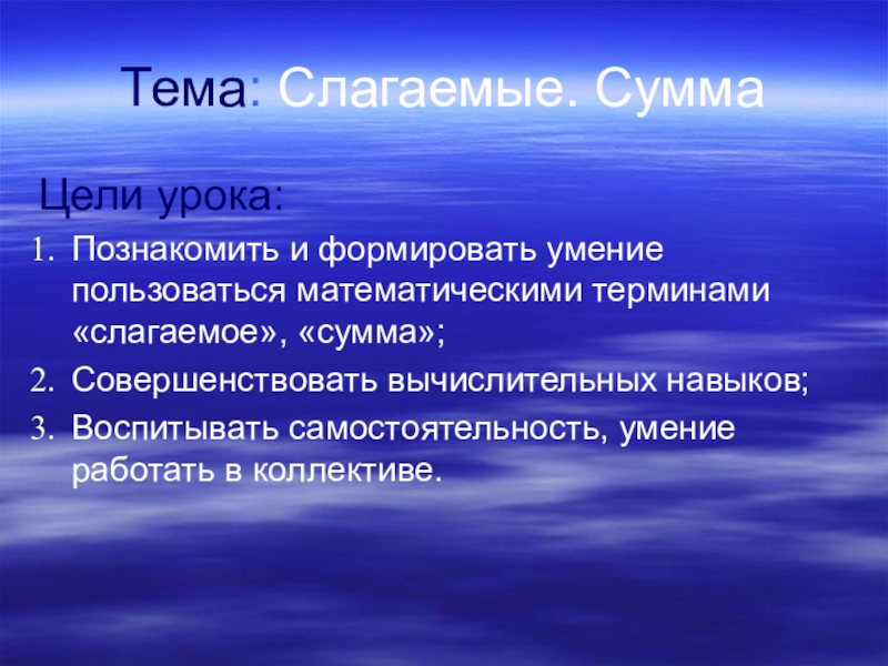 математическими терминами «слагаемое», «сумма»;