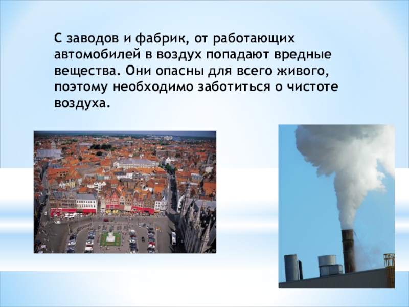 Слайд 22С заводов и фабрик, от работающих автомобилей в воздух попадают вредные
