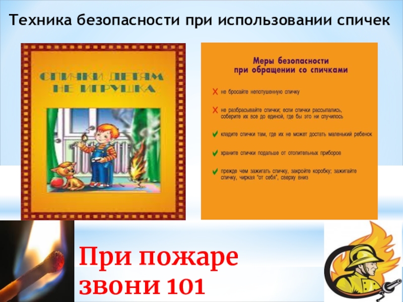 Техника безопасности при использовании спичекПри пожаре звони 101