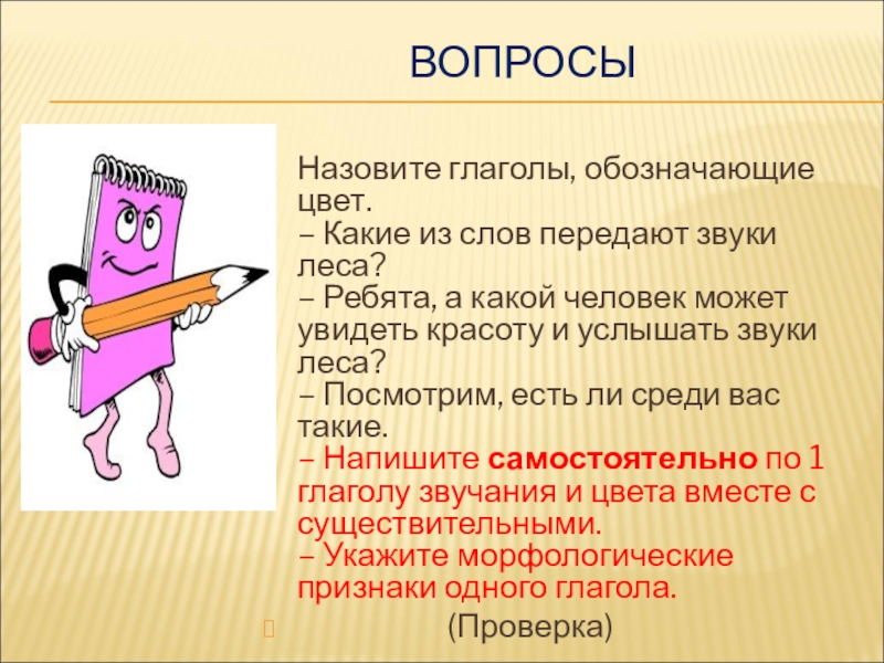 – Укажите морфологические признаки одного глагола.