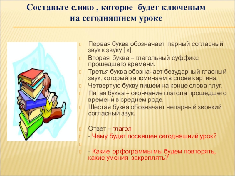 Цель: обобщить полученные знания о глаголе.