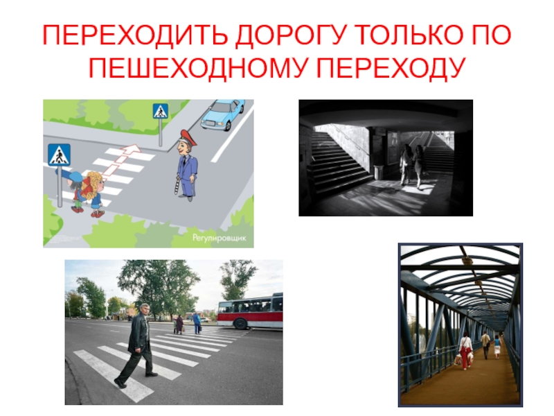 Слайд 13ПЕРЕХОДИТЬ ДОРОГУ ТОЛЬКО ПО ПЕШЕХОДНОМУ ПЕРЕХОДУ