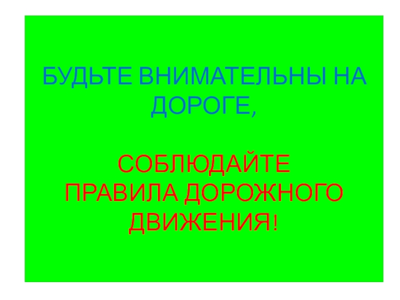Слайд 27БУДЬТЕ ВНИМАТЕЛЬНЫ НА ДОРОГЕ, СОБЛЮДАЙТЕ ПРАВИЛА ДОРОЖНОГО ДВИЖЕНИЯ!