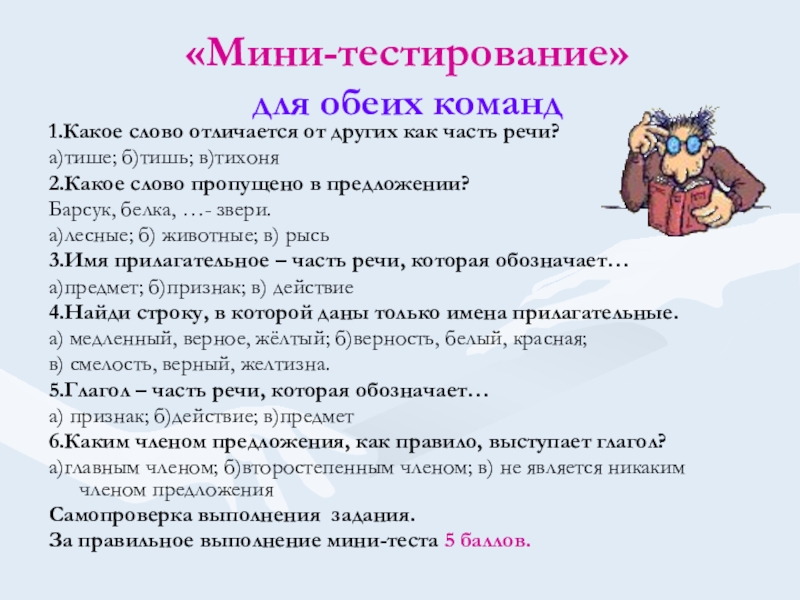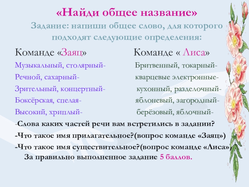 -Что такое имя существительное?(вопрос для команды «Лиса»)