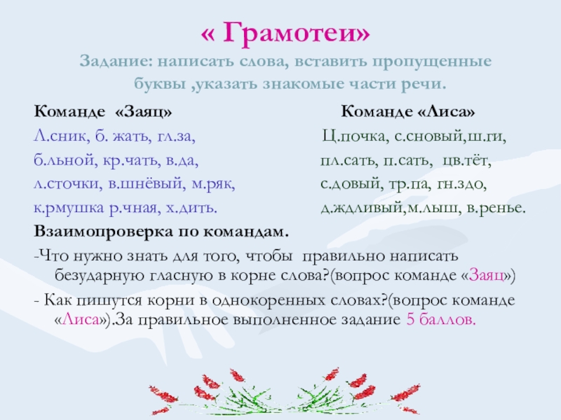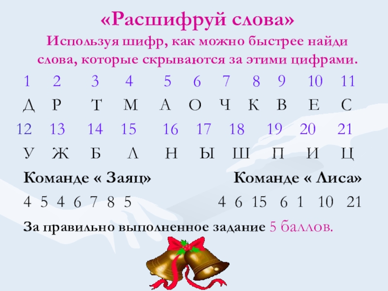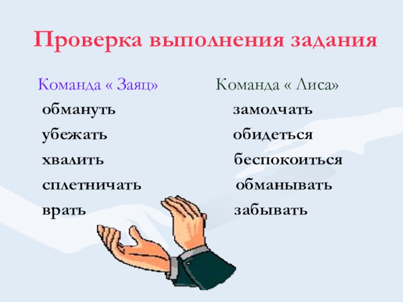 Команде « Заяц» Команде « Лиса»