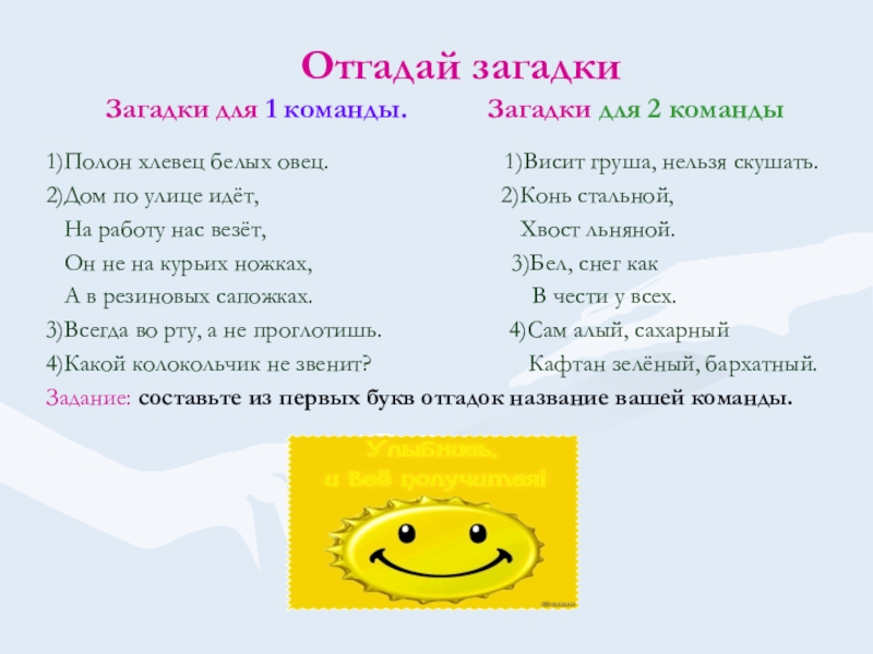 Задание: составьте из первых букв отгадок название вашей команды.