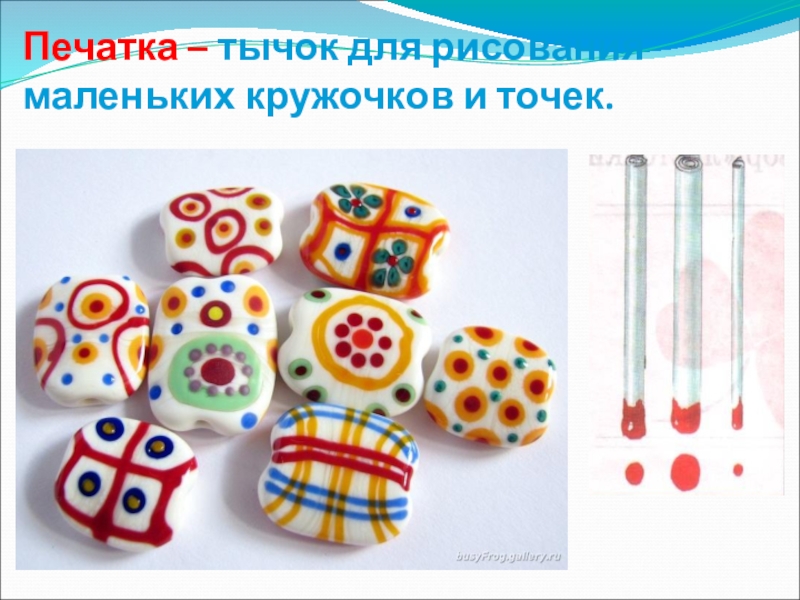 Слайд 20Печатка – тычок для рисования маленьких кружочков и точек.