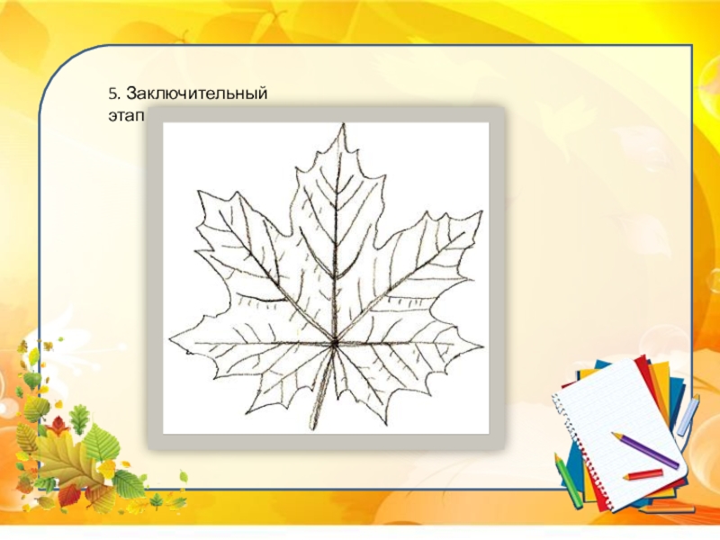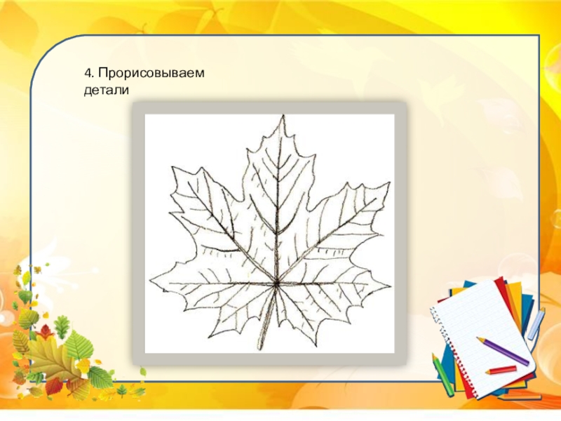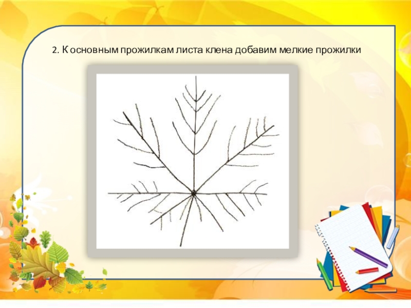 Слайд 52. К основным прожилкам листа клена добавим мелкие прожилки