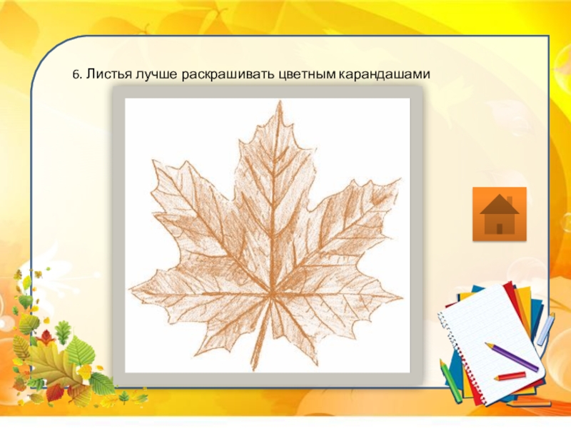 Слайд 96. Листья лучше раскрашивать цветным карандашами