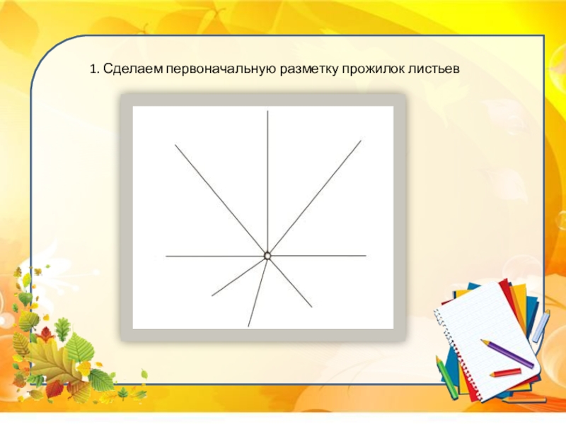 Слайд 41. Сделаем первоначальную разметку прожилок листьев