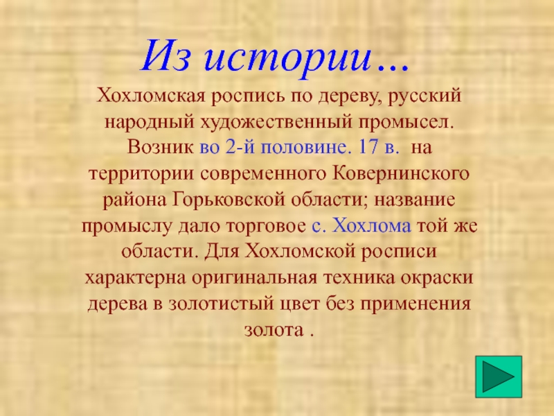 По названию местности. (село Хохлома)