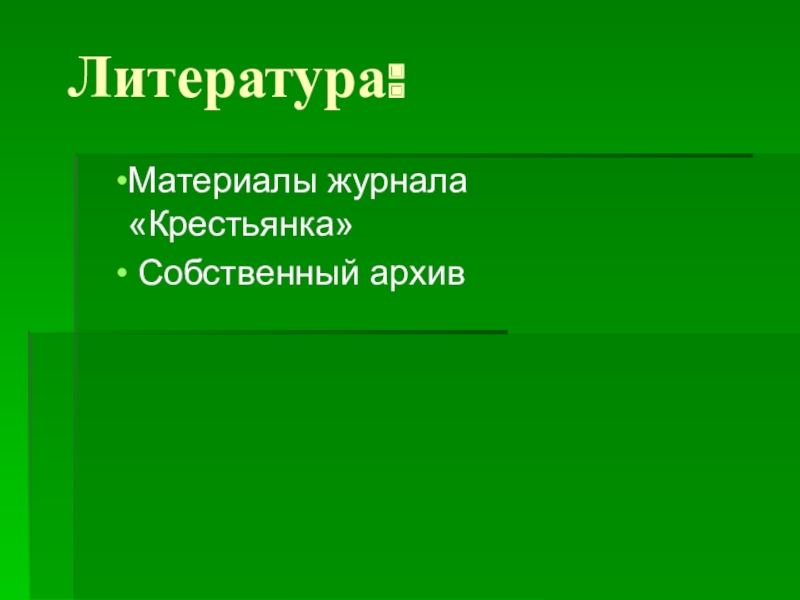 Литература:Материалы журнала «Крестьянка» Собственный архив