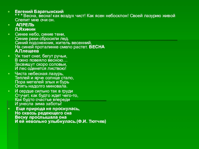 Слайд 3Евгений Баратынский * * * Весна, весна! как воздух чист!