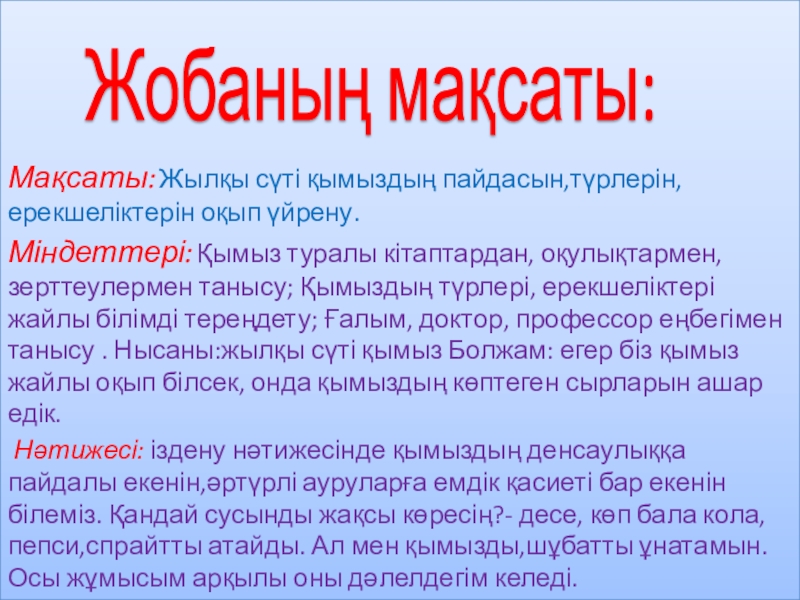 Жобаның мақсаты: