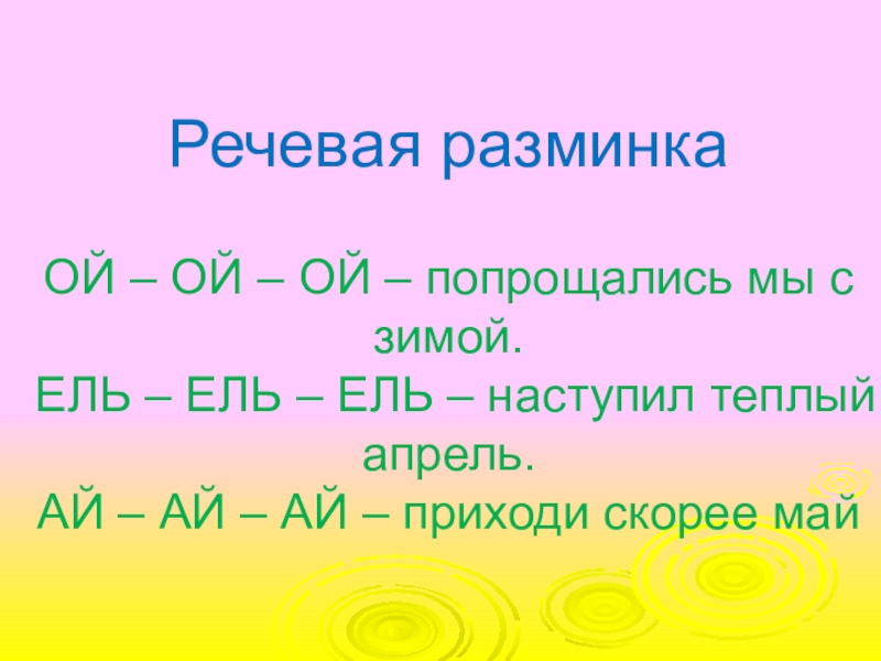 Слайд 3Речевая разминка ОЙ – ОЙ – ОЙ – попрощались мы с зимой.  ЕЛЬ