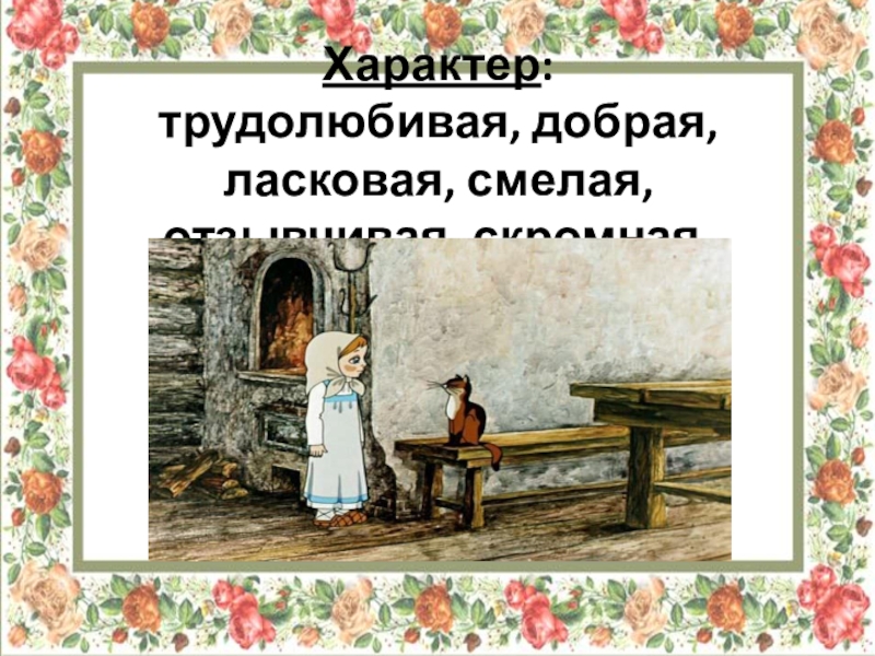 трудолюбивая, добрая, ласковая, смелая, отзывчивая, скромная.