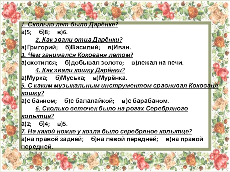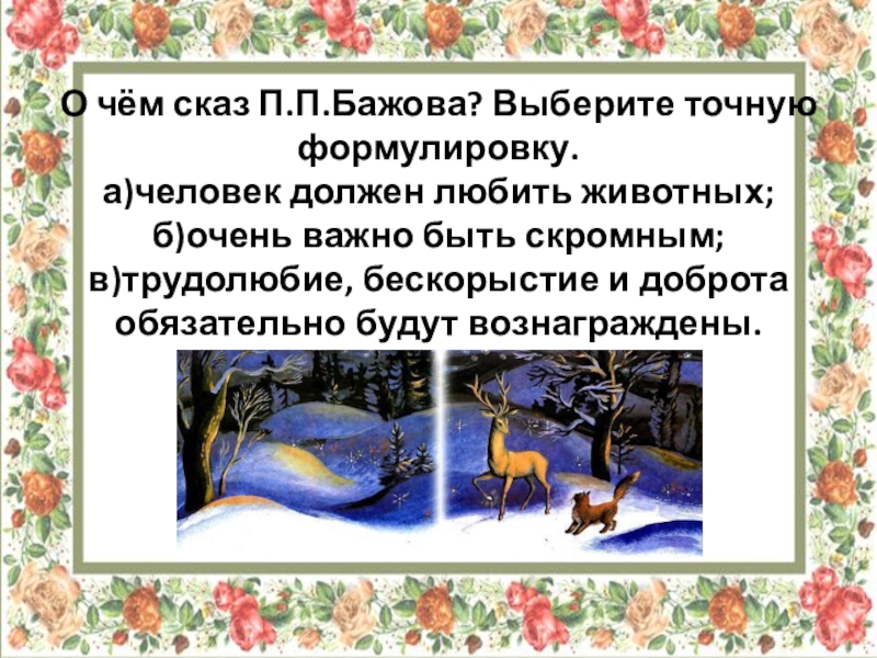 Слайд 23О чём сказ П.П.Бажова? Выберите точную формулировку.