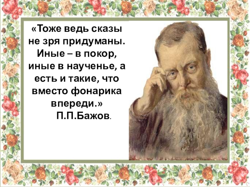 Слайд 24«Тоже ведь сказы не зря придуманы. Иные – в покор, иные