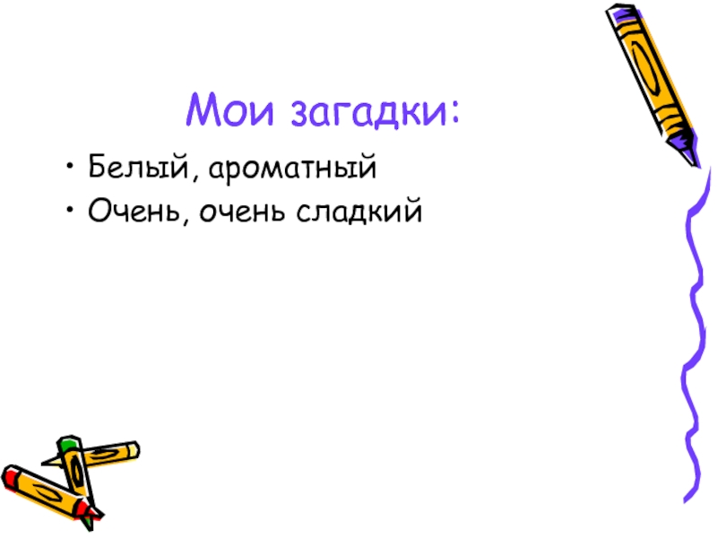 Мои загадки:Белый, ароматныйОчень, очень сладкий
