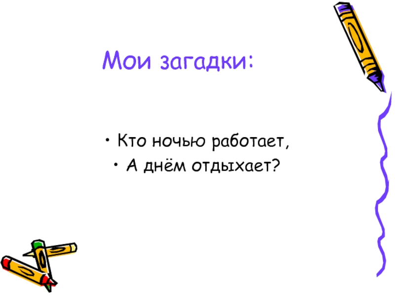 Мои загадки:Кто ночью работает, А днём отдыхает?