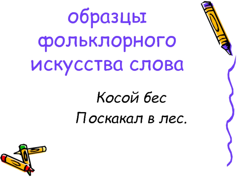 образцы фольклорного искусства слова Косой бес Поскакал в лес.