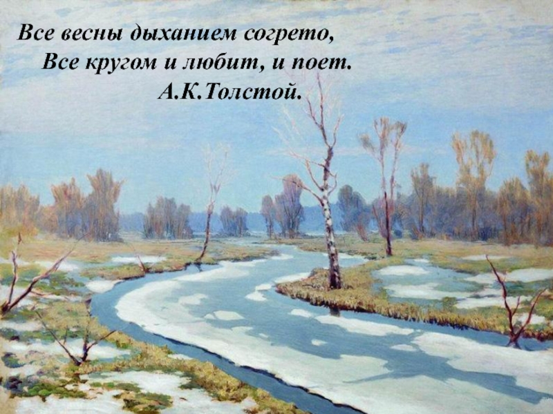 Все весны дыханием согрето, Все кругом и любит, и поет.                       А.К.Толстой.