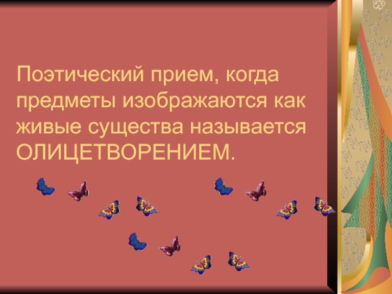 Слайд 10Поэтический прием, когда предметы изображаются как живые существа называется ОЛИЦЕТВОРЕНИЕМ.