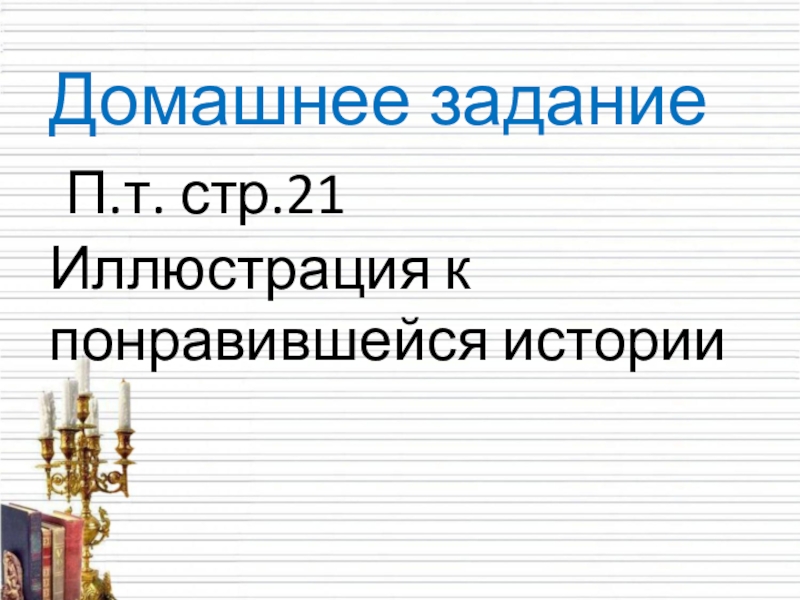 Слайд 11Домашнее задание П.т. стр.21 Иллюстрация к понравившейся истории