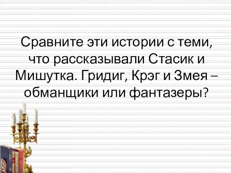 Слайд 9Сравните эти истории с теми, что рассказывали Стасик и Мишутка. Гридиг,