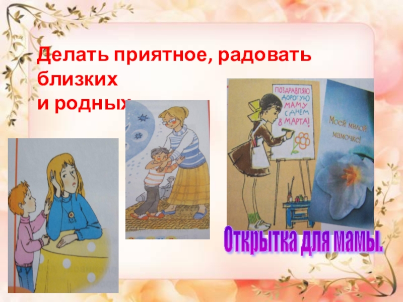 Делать приятное, радовать близких и родных.Открытка для мамы.